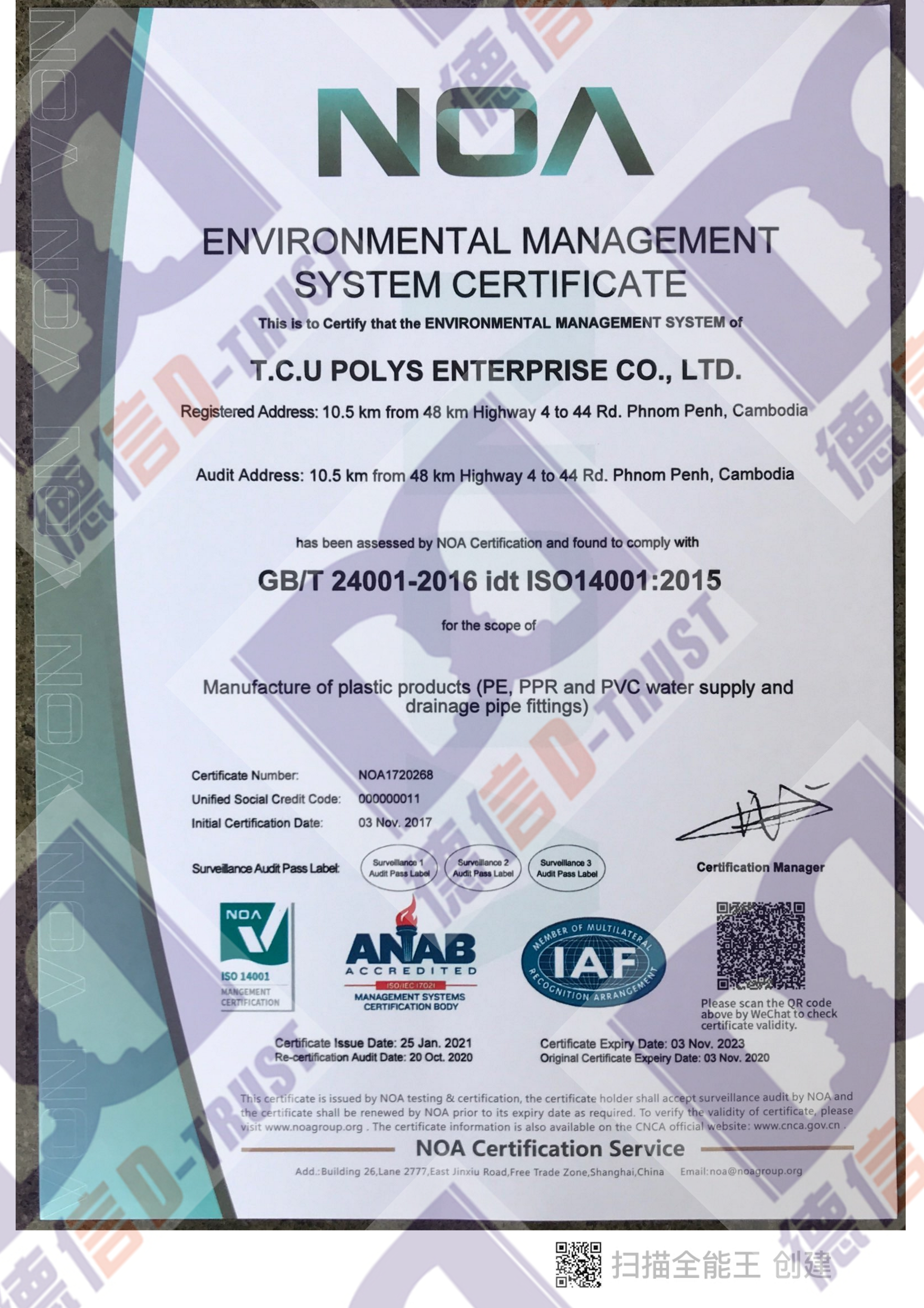 恭喜柬埔寨联通科技公司通过ISO三体系: