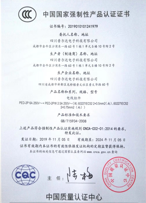 热烈祝贺四川普尔达电子科技有限公司取得ccc强制性产品认证证书