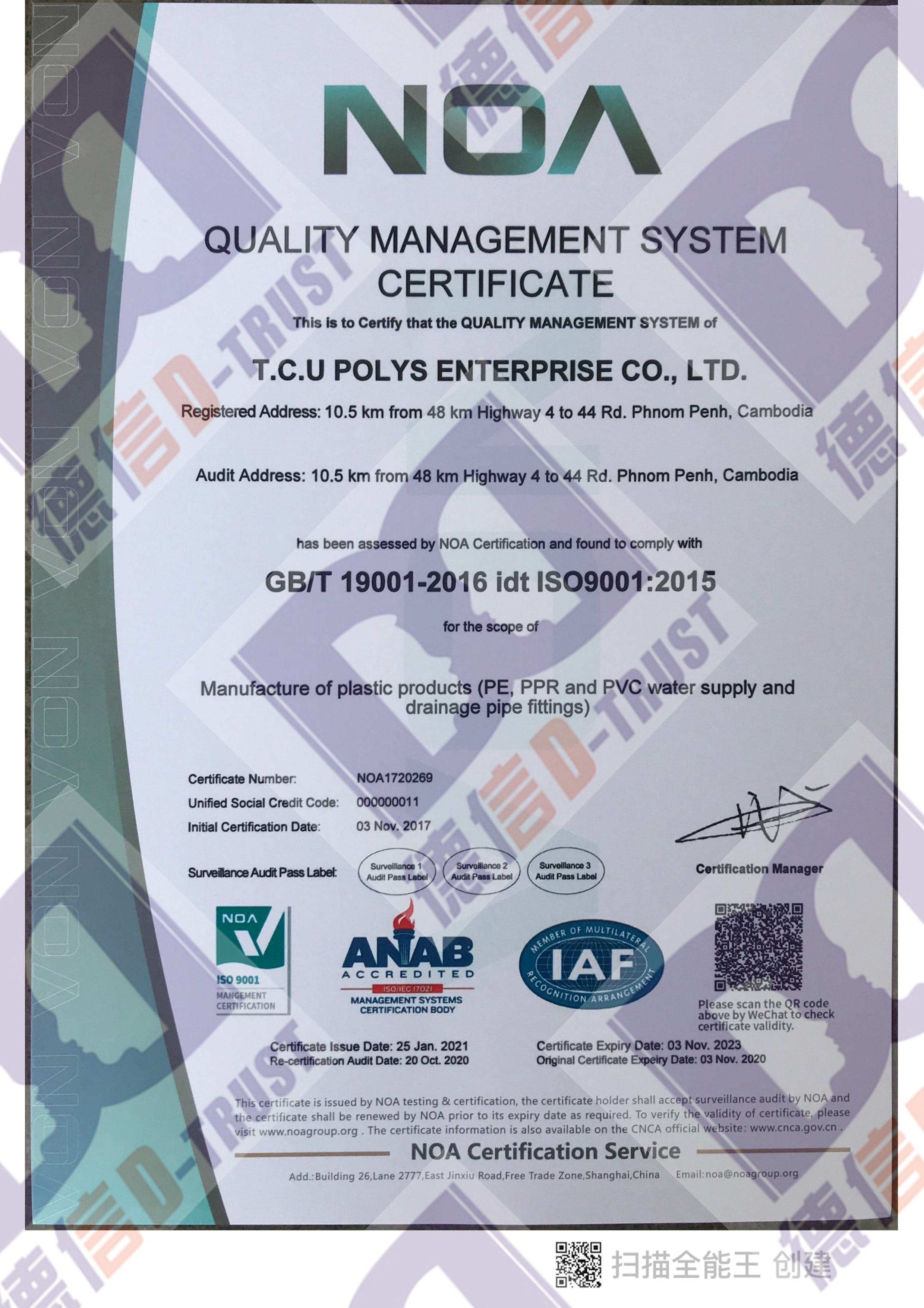 恭喜柬埔寨联通科技公司通过ISO三体系: