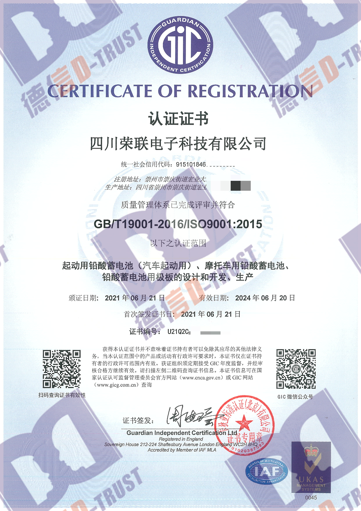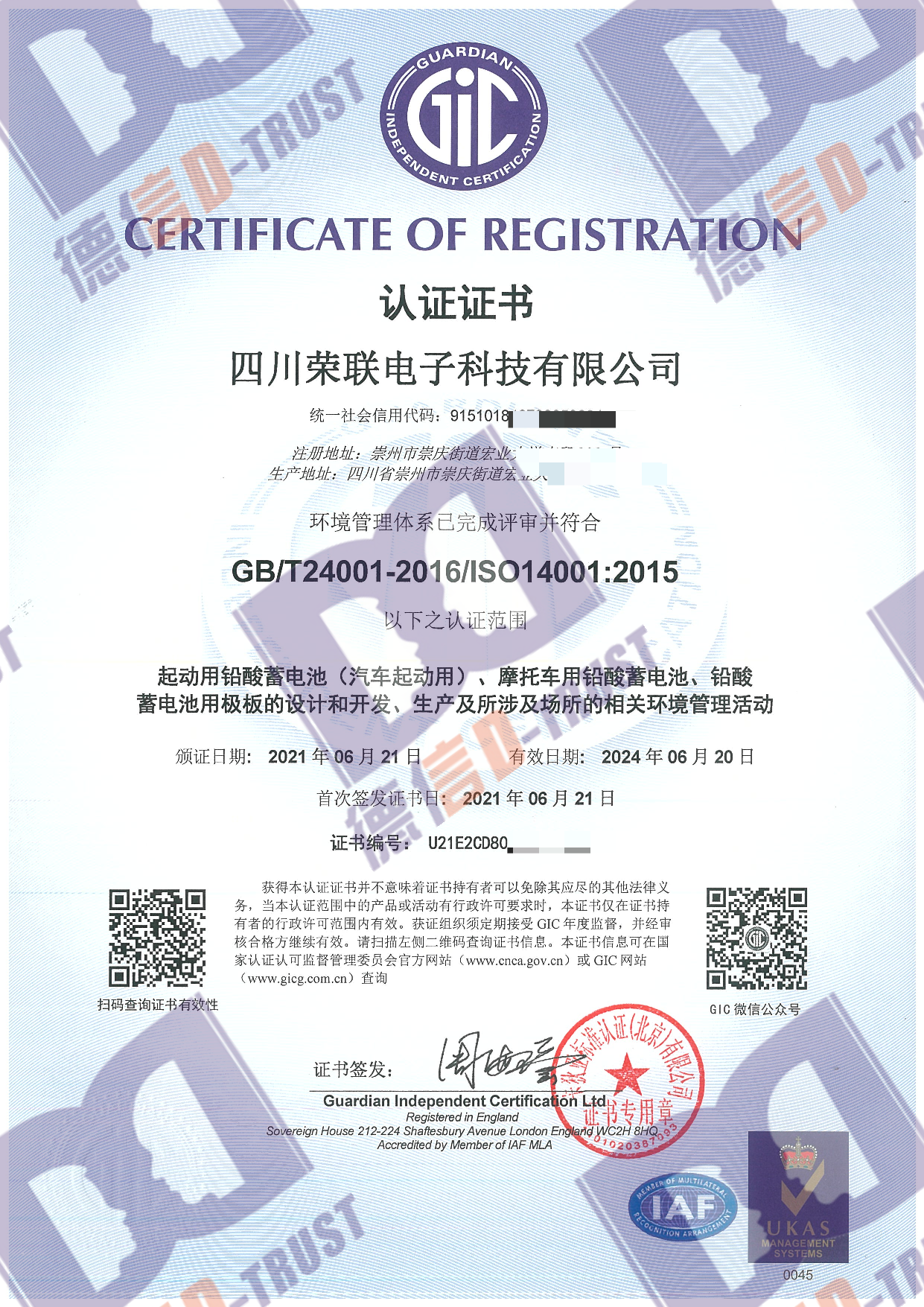 恭喜四川荣联电子科技有限公司顺利取得ISO45001,ISO14001,ISO9001三体系